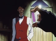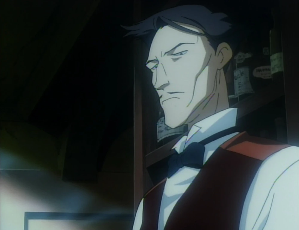 The character was credited simply as "Bartender." It was voiced by Katsumi Chou in Japanese and Jack Hammer in English.[2]