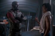 At a different location, Jet and Fad contemplate what Udai's next move will be and Jet has an epiphany that Udai will try to get off the planet on a sorting station. It's at that sorting location, that Fad and Jet split up to search for Udai. After a brief chase Jet manages to catch up to Udai who surrenders, but is shot dead by Fad who reveals he was Udai's contact and the one who gave him his metal arm and leg. Fad then fires at Jet who uses his metal arm to deflect the bullet and Jet returns fire killing Fad. Both Chalmers and Duero then arrive at the scene. Duero leaves to report their find and Chalmers learns that Jet killed Fad in self-defense, while also claiming that Jet killed the only man who could have proved his innocence. Before leaving, he suggests that Jet leave the scene before the ISSP arrives. Before leaving the scene, Jet leaves some money on Fad's body claiming that Birdie was the better player.[4]