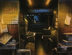 Jet Black and Spike Spiegel visited the store when Jet received a beta cassette in a delivery to the Bebop. Spike unintentionally did some damage while he was there, but their tape seemed to be damaged as well, so Jet called it even.[1]